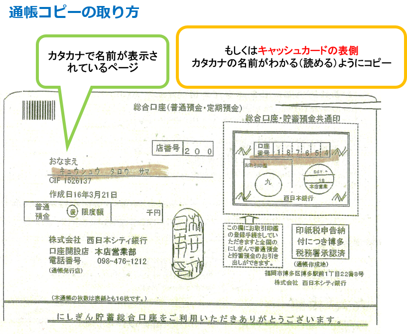 ※通帳は表紙裏の氏名のカタカナなどがわかる箇所をコピー
